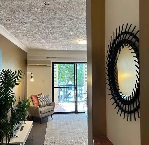 The spacious 70 m² Stylish Beachside 1Br Apartment Gold Coast is within 10 minutes' drive of Bond University Events Centre and features a deck with a swimming pool. Dracula's Cabaret Gold Coast is 3.1 km from the 1-bedroom apartment.